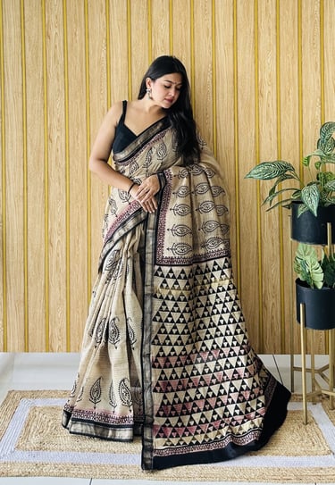 BAGRU PRINT MAHESHWARI SILK SAREE