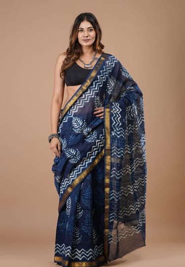 In Hyderabad, women adore draping these for formal gatherings or cultural events, as they're breathable in our climate yet exude royalty. Boutiques in Banjara Hills often stock our pieces because customers rave about how a simple hand-block printed motif can transform a saree into a heirloom. We source directly from Maheshwar weavers, ensuring every piece carries authentic vegetable dyes and that timeless elegance. If you're looking for something that bridges Hyderabad's glorious past with modern wear, our Nizam-inspired hand block printed Maheshwaris are perfect—elegant, comfortable, and truly one-of-a-kind.