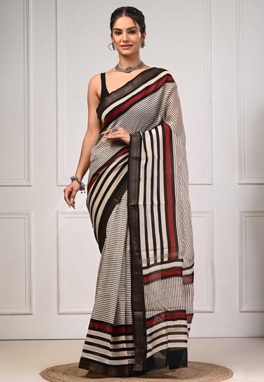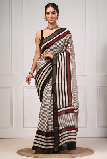Our hand block printed Maheshwari silk sarees are designed with carefully crafted zari borders that complement the prints rather than overpower them. Thin zari borders are preferred for premium everyday wear, while broader borders are developed for festive and wedding collections.
