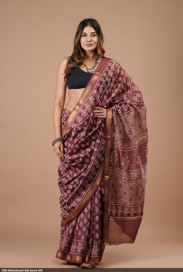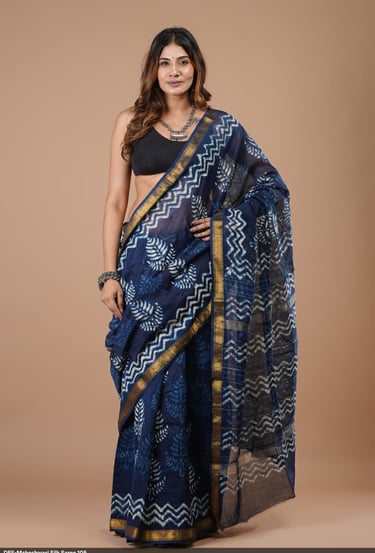 Morviya Textiles is a specialized manufacturer and wholesaler of authentic hand block printed Maheshwari silk sarees, inspired by traditional designs and crafted for premium wholesale supply.