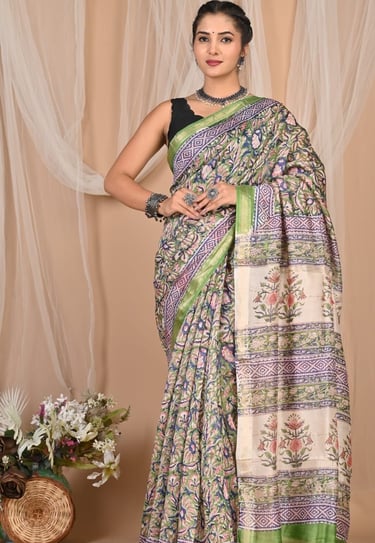 BAGRU PRINT MAHESHWARI SILK SAREE
