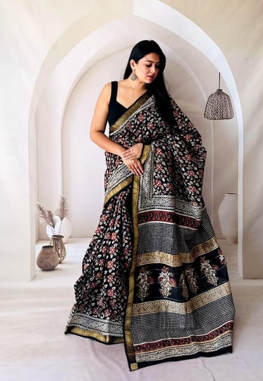 BAGRU PRINT MAHESHWARI SILK SAREE